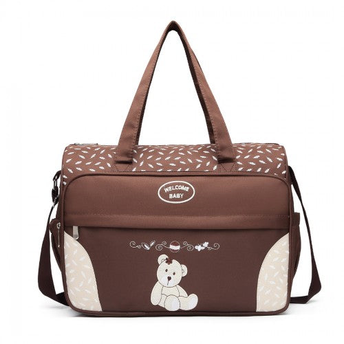 08190 - Kono Teddy Bear ‘Welcome Baby’ Changing Bag with Changing Mat - Coffee
