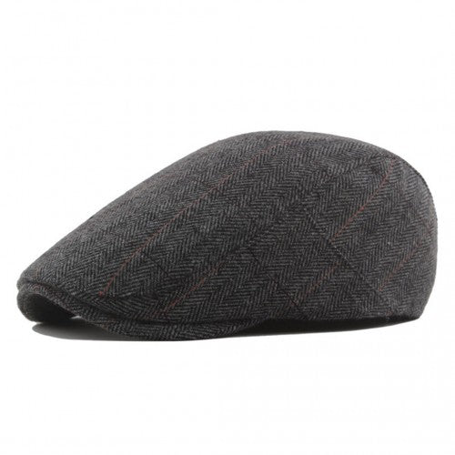 CAP-1 - Men's Newsboy Baker Boy Herringbone Flat Cap Hat - Grey