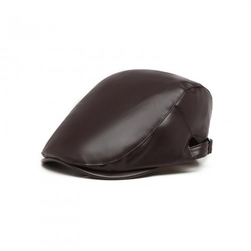 CAP-3 - Men's Newsboy Baker Boy Peaky Blinders Gatsby Leather Look Flat Cap Hat - Brown