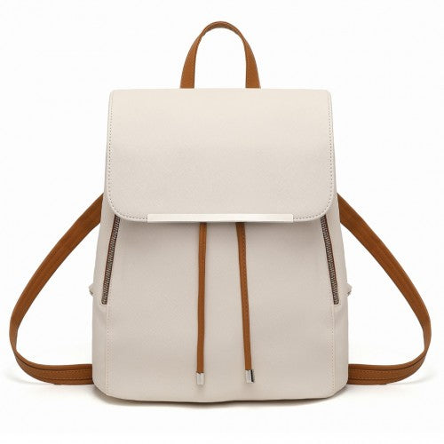 E1669 - Miss Lulu Faux Leather Stylish Fashion Backpack - Beige And Brown