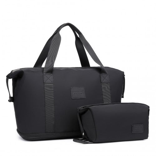 EA2212 - Kono Two Pieces Expandable Durable Waterproof Travel Duffel Bag Set - Black