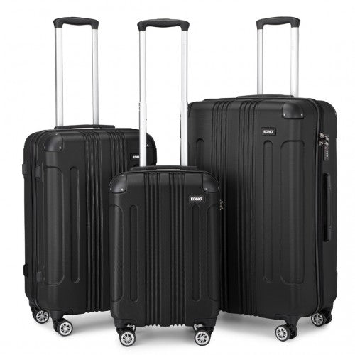 K1777-1L - Kono 19/24/28 Inch 3 Piece Set ABS Lightweight Compact Hard Shell Travel Luggage - Black