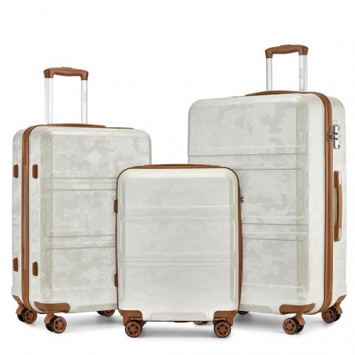 K1871-1L - Kono ABS Sculpted Horizontal Design 3 Piece Suitcase Set - Camouflage Cream And Brown