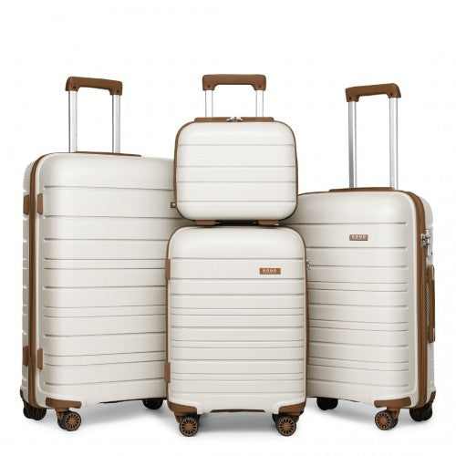 K2091L - Kono Multi Texture Hard Shell PP Suitcase With TSA Lock And Vanity Case 4 Pieces Set - Classic Collection - Cream