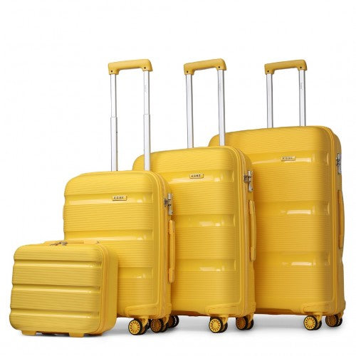 K2092L - Kono Bright Hard Shell PP Suitcase With TSA Lock And Vanity Case 4 Pieces Set - Classic Collection - Yellow