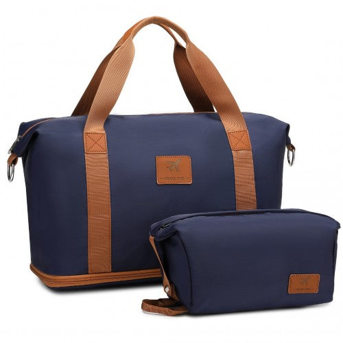 S2366 - 36L Expandable Water-Resistant Travel Tote Set with Cosmetic Pouch Versatile Carry-On Duffel Bag - Navy And Brown