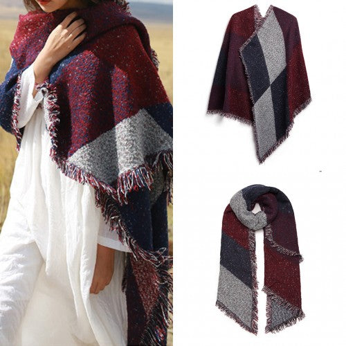S6427 - Women Ladies Fashion Plaid Scarf Blanket Winter Warm Wrap Shawl - Red